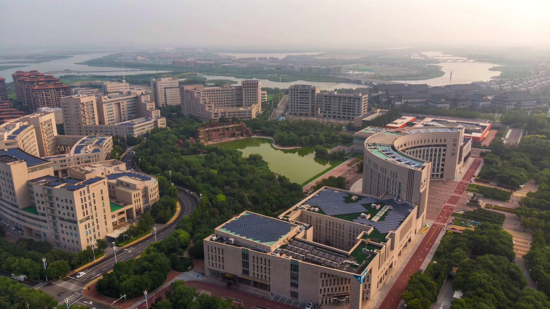 生态城内建有五个园区,分别是国家影视园、生态科技园、国家动漫园、生态信息园、生态产业园。